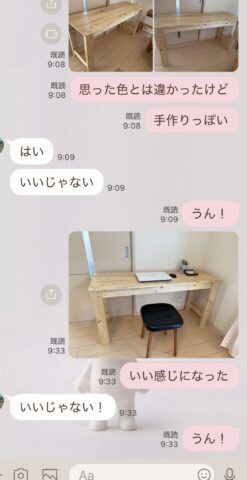 その夫にLINEで机を見せたら意外にも褒めてくれた。
