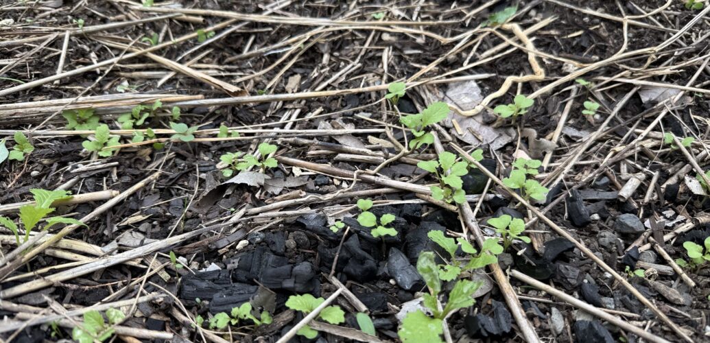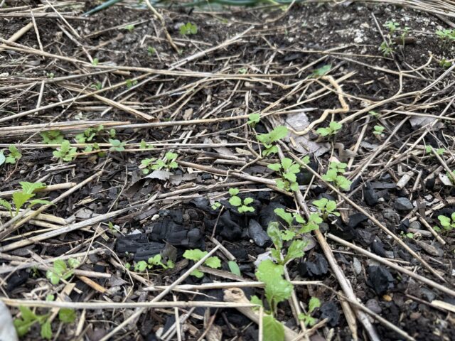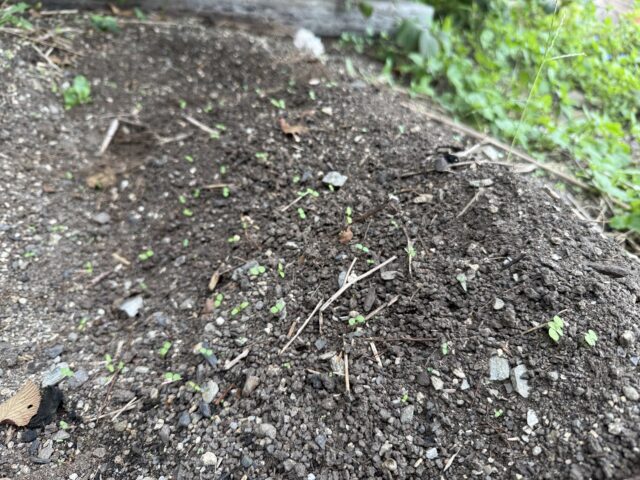 種蒔きしようとしたら、こぼれ種で芽が出ている場所もあった。