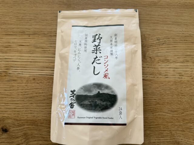 お歳暮で茅乃舎だしの、焼あご入りとコンソメ風の二種類をいただいた。