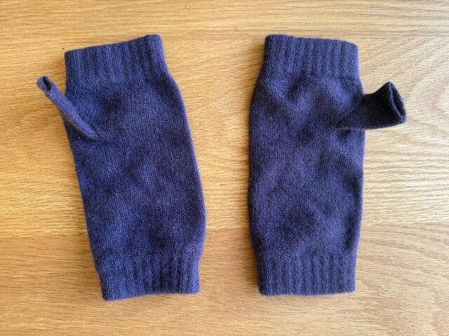右のカシミアのハンドウォーマーは、53歳の時、バッキンガム宮殿のショップで買った。