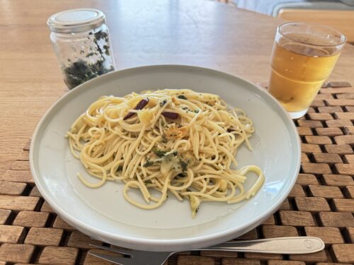 しその実の塩漬けでパスタ