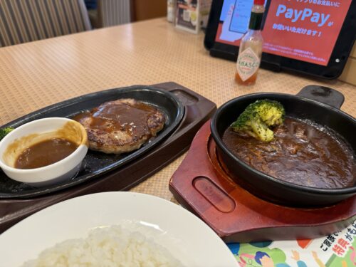 後で考えたら、デミハンバーグとペペロンチーノとデザートを選んだら良かった。