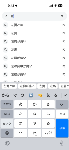 トップに「右の背中が痛い」と出てきたので、右の背中が痛い人が多いみたいで、少しほっとした。