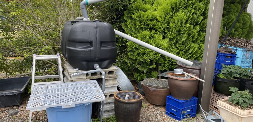 たぶんこれでは足りないので、携帯用浄水器で雨水や、汲んでおいた水道水を飲み水にしようと思う。