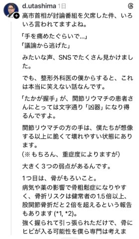同じ病を患っている方はとくに、この「手の怪我くらいで逃げるな」発言やパロディ投稿には 腹が立ったと思う。