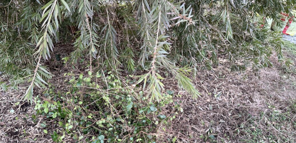 すごい勢いで広がった「ハツユキカズラ」が、夫が大事にしている大きなブラシの木に絡まりだして、夫が嫌がっていたので引き抜くことにした。