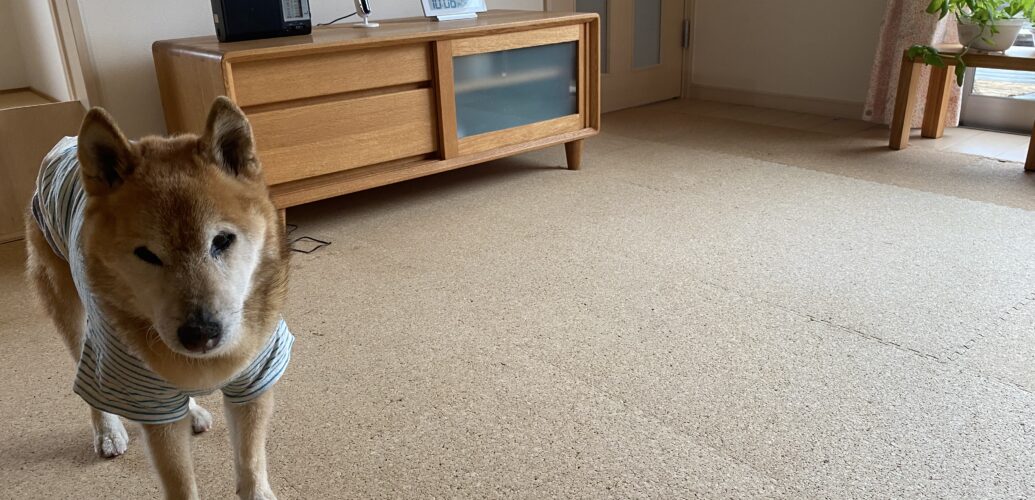 コロ助が飲み水の入れ物に片足を突っ込んでいて、周りには水がこぼれてびしょびしょになっていました。