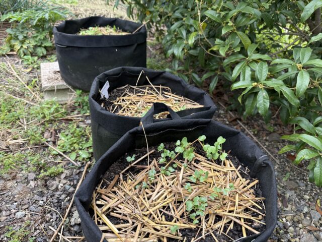 人参はこれまでは なかなか芽が出なかったのに、今回はあちこちで芽が出ていた。