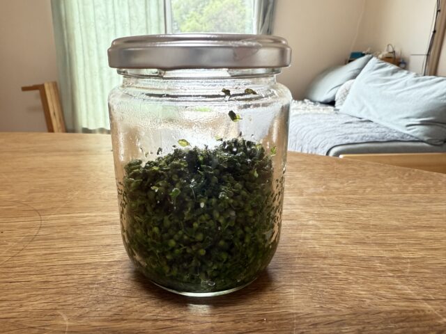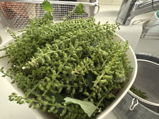 それから、しその実が大きくなっていて実が取りやすそうだったので、3回目の収穫をした。