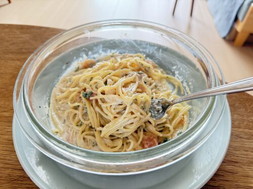 さっとフォークで混ぜ合わせて、写真を撮ったので、盛り付けがあまりきれいに見えないけれど、美味しかった。