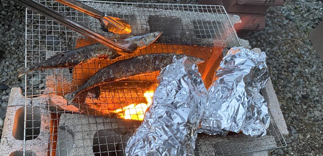その上、サンマの油が落ちるとよけい 炎が上がりました。